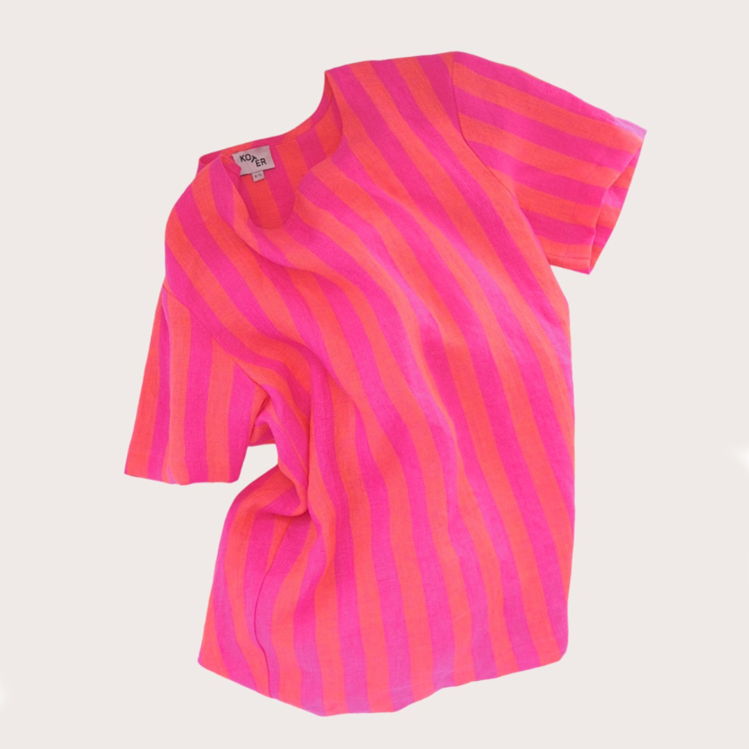 Alani Linen stripe t-shirt dress is an easy summer throw on. With a voluminous silhouette and curved back we've made a twist on a classic piece.