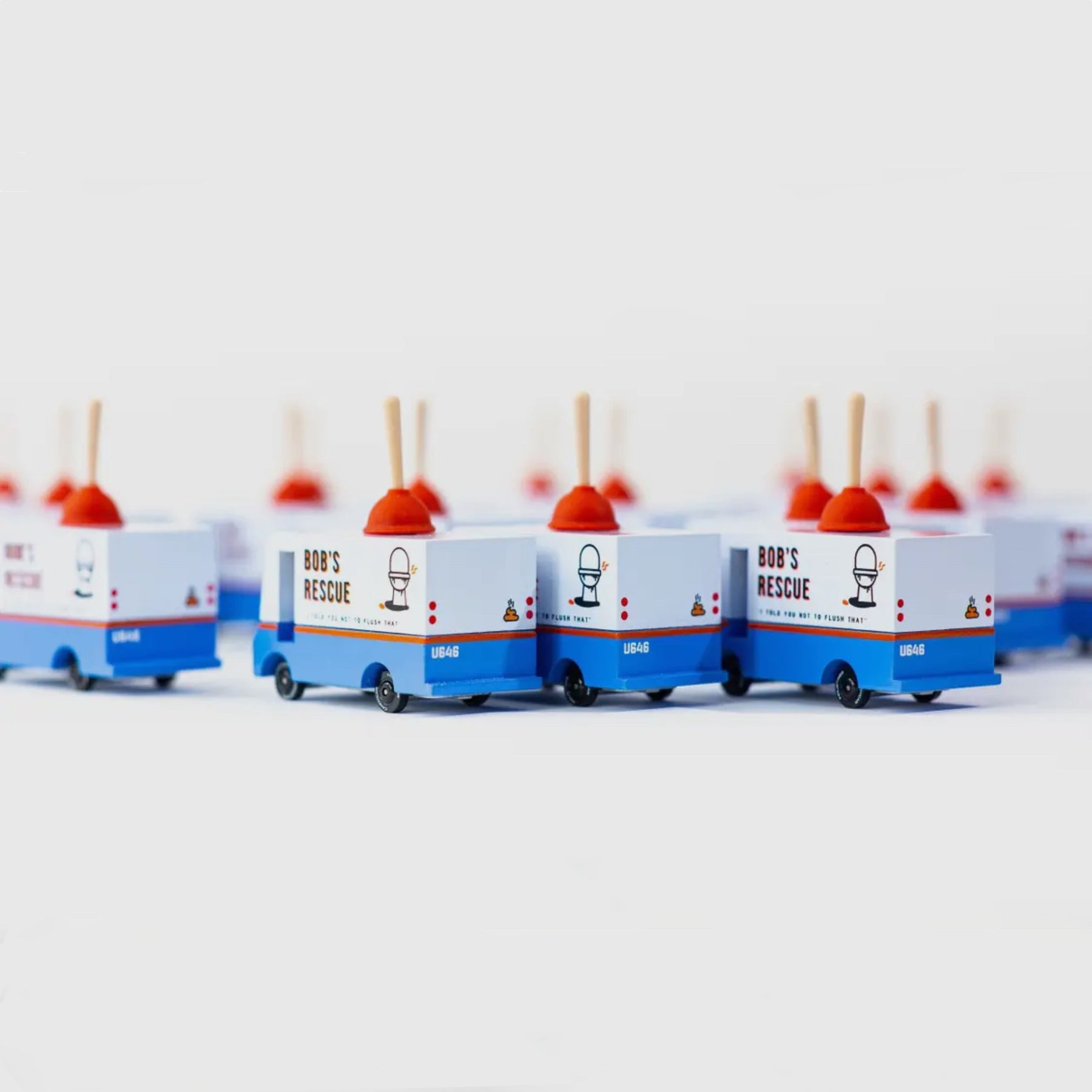 Need to unclog a drain or toilet? Never fear, Bob's Plumbing Van is here! Complete with a rubber plunger on top, no job is too big (or small) for this baby.