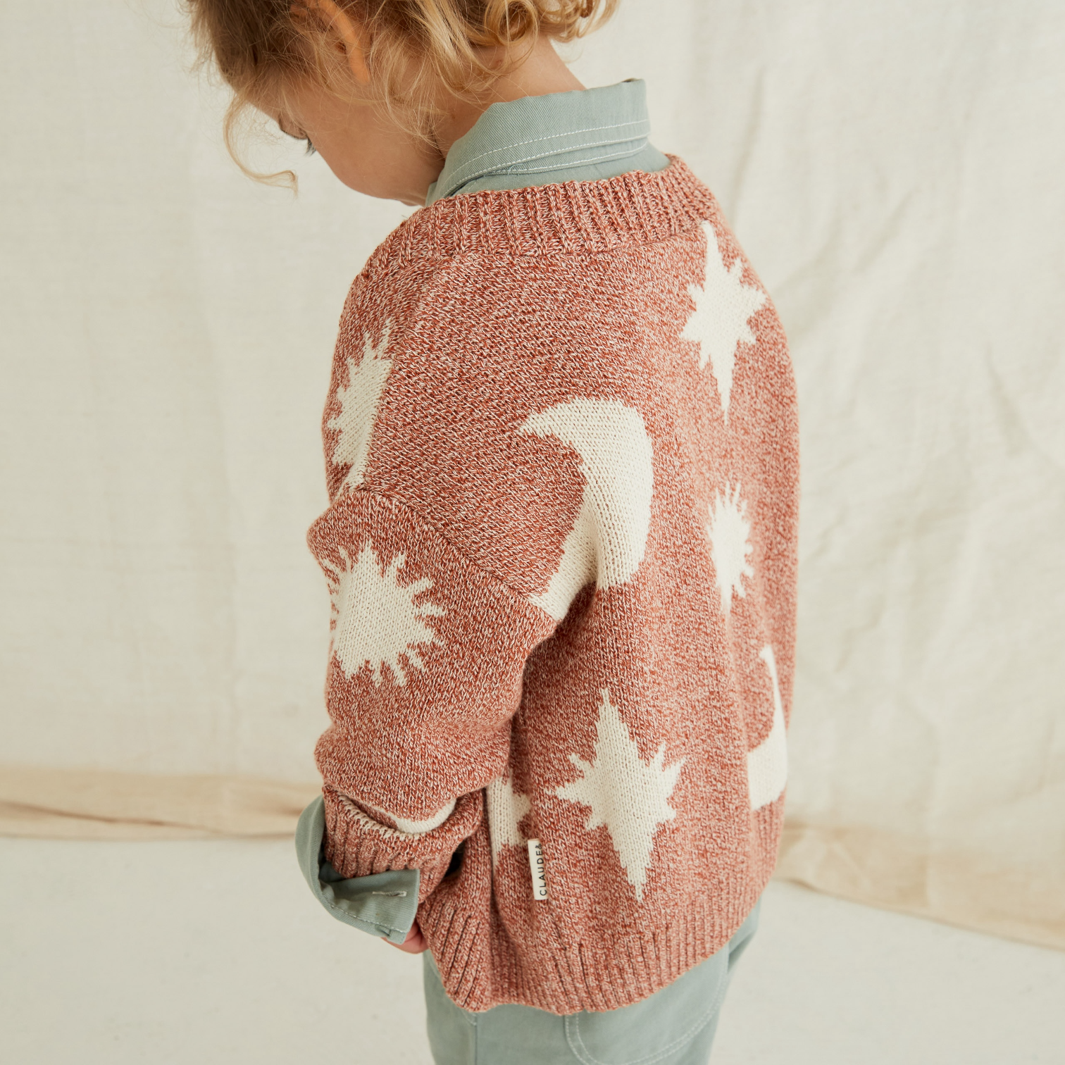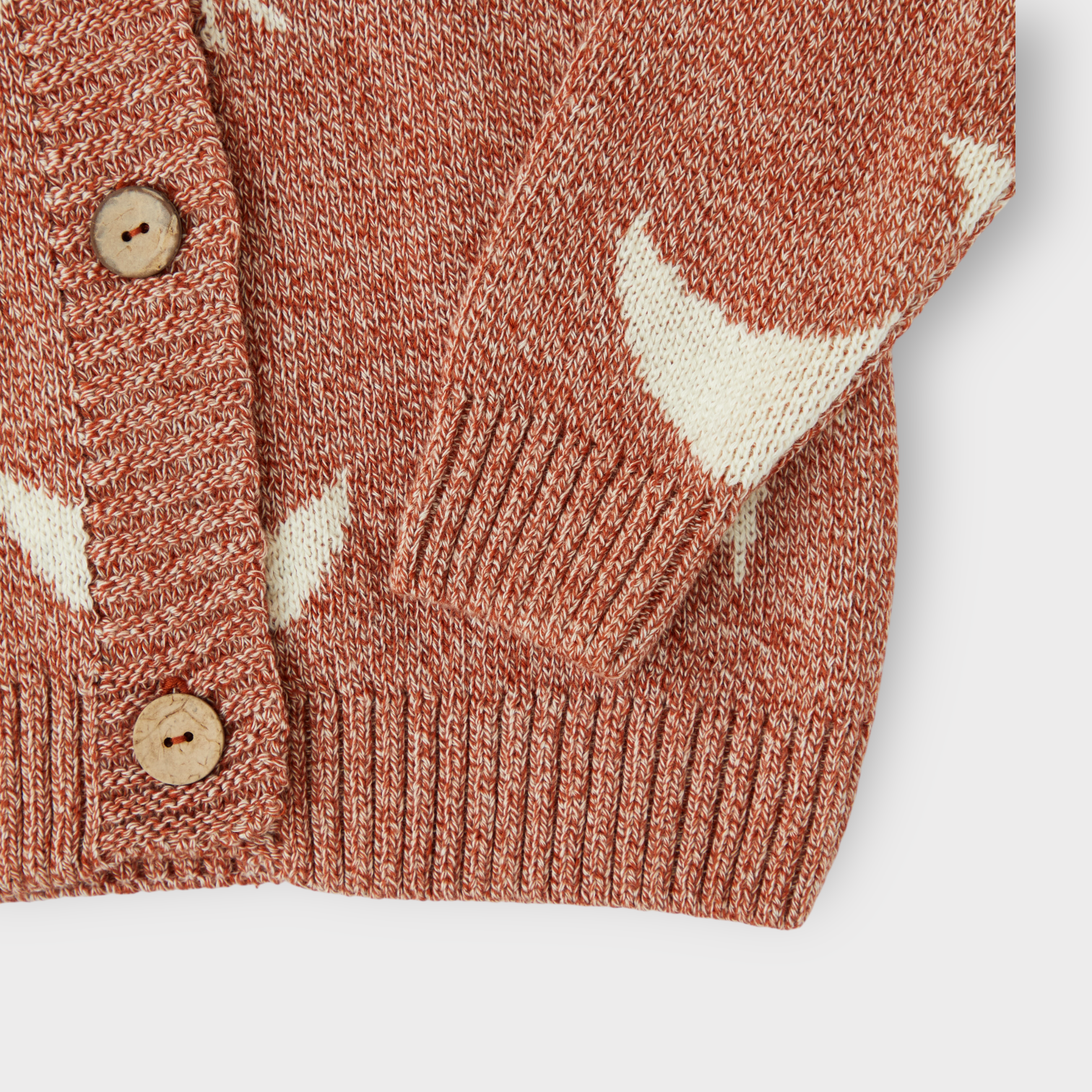 100% cotton and 100% soft! With large front buttons, this sweater is amazing for wearing AND for little hands to practice their buttoning skills.ย