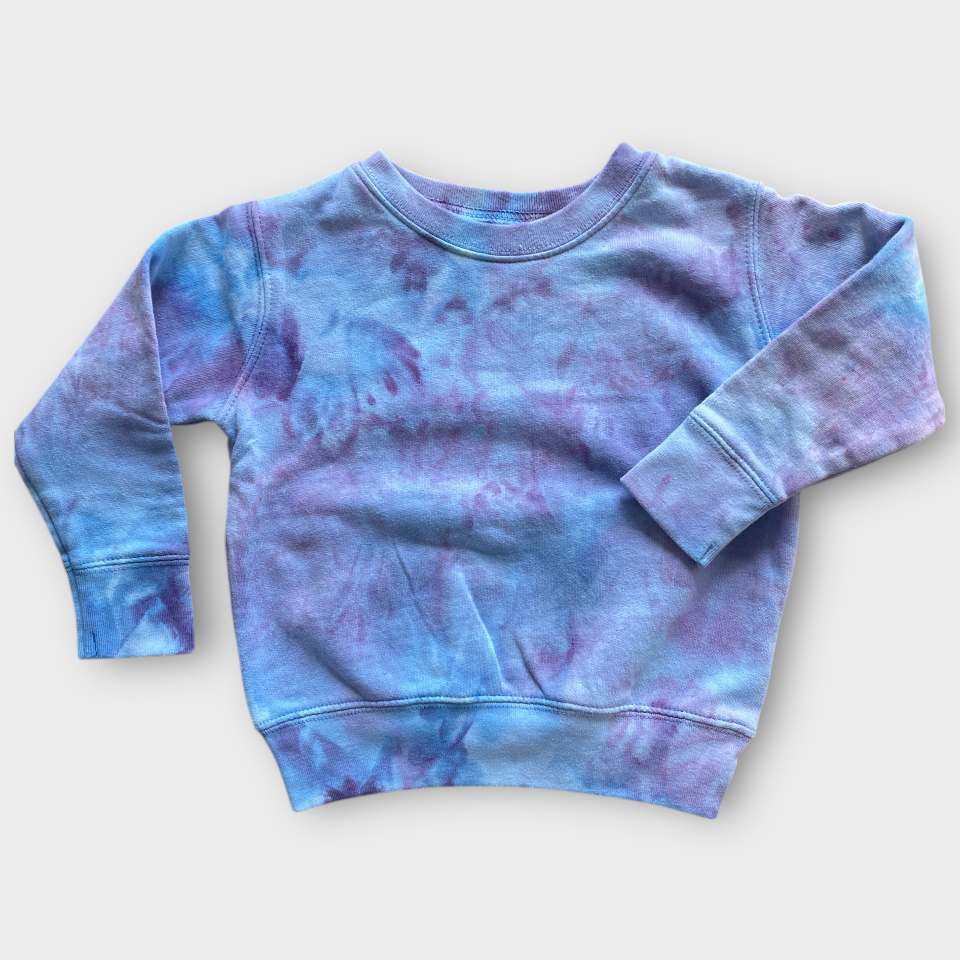 The Wildest Kids cotton fleece crewneck is here! So soft and so cute, this sweatshirt is sure to hide any stains! This is the ultraviolet colorway which is a spectrum of wisteris, dusty blue, ice blue and royal purple.ย