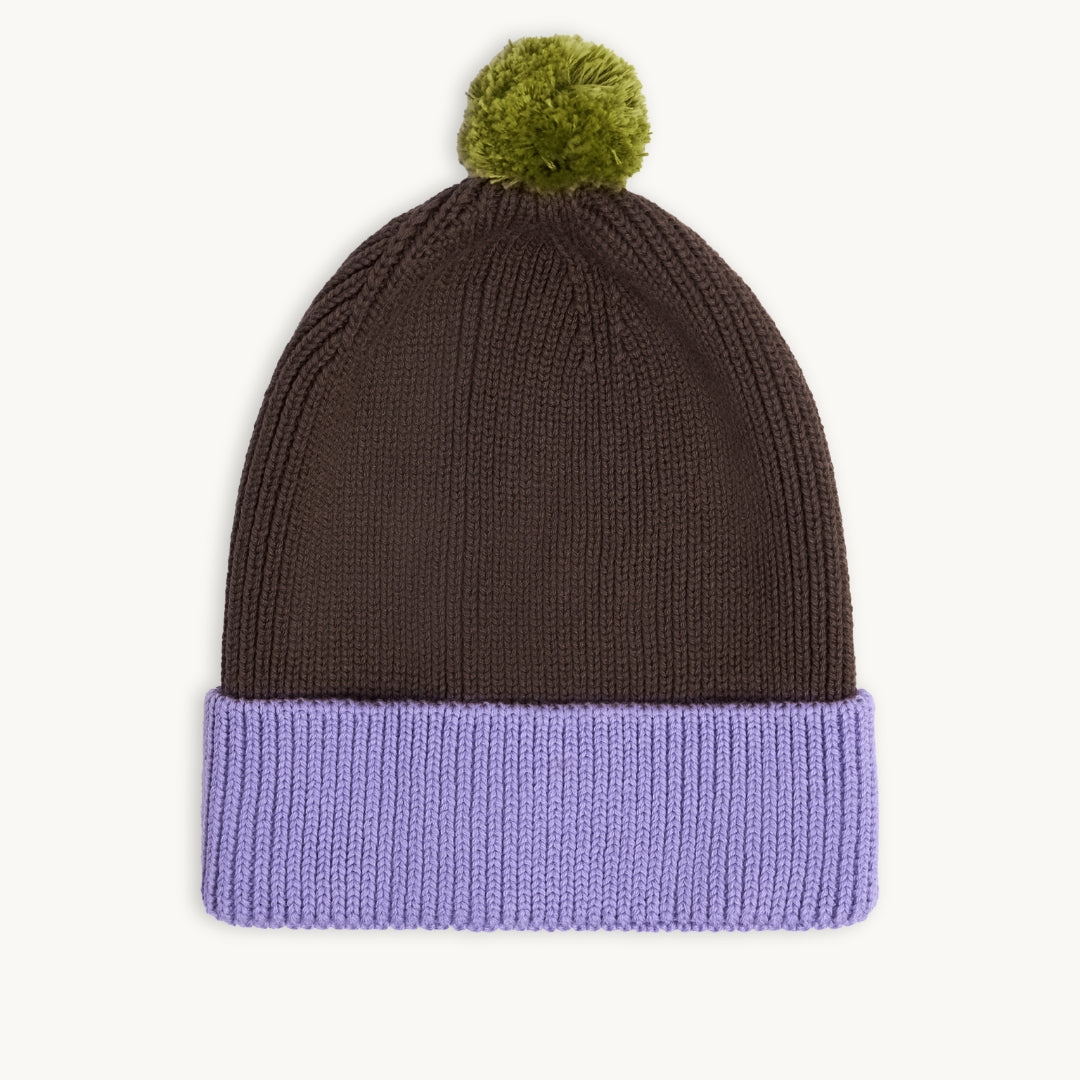 Organic Cotton Beanie Lilac and Brown