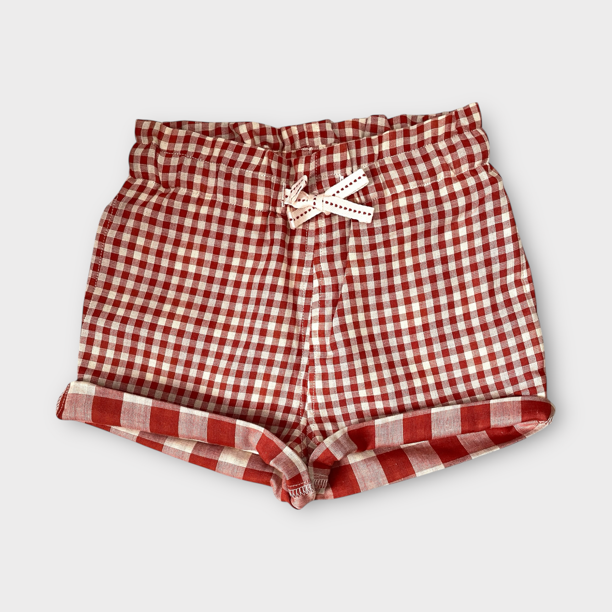 The cutest gingham shorts made from soft woven fabric that is long-lasting. Double woven cotton adds a little contrast when rolled up!ย